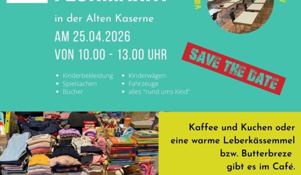 Am 25.04.2026 könnt Ihr von 10 - 13 Uhr wieder in der alten Kaserne alles "rund ums Kind" einkaufen.